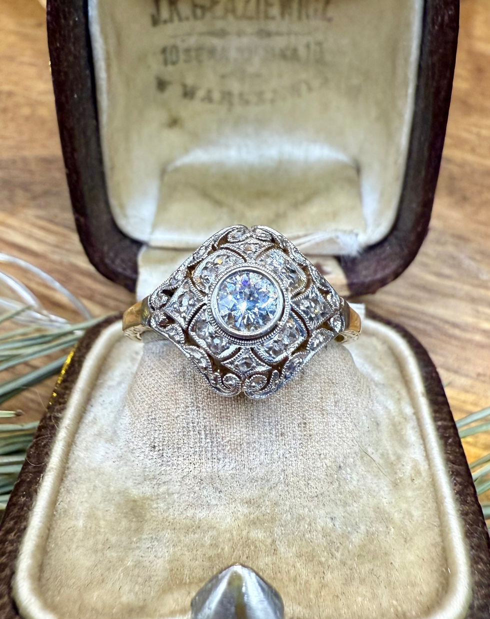 Art Nouveau Diamond and Emerald Ring